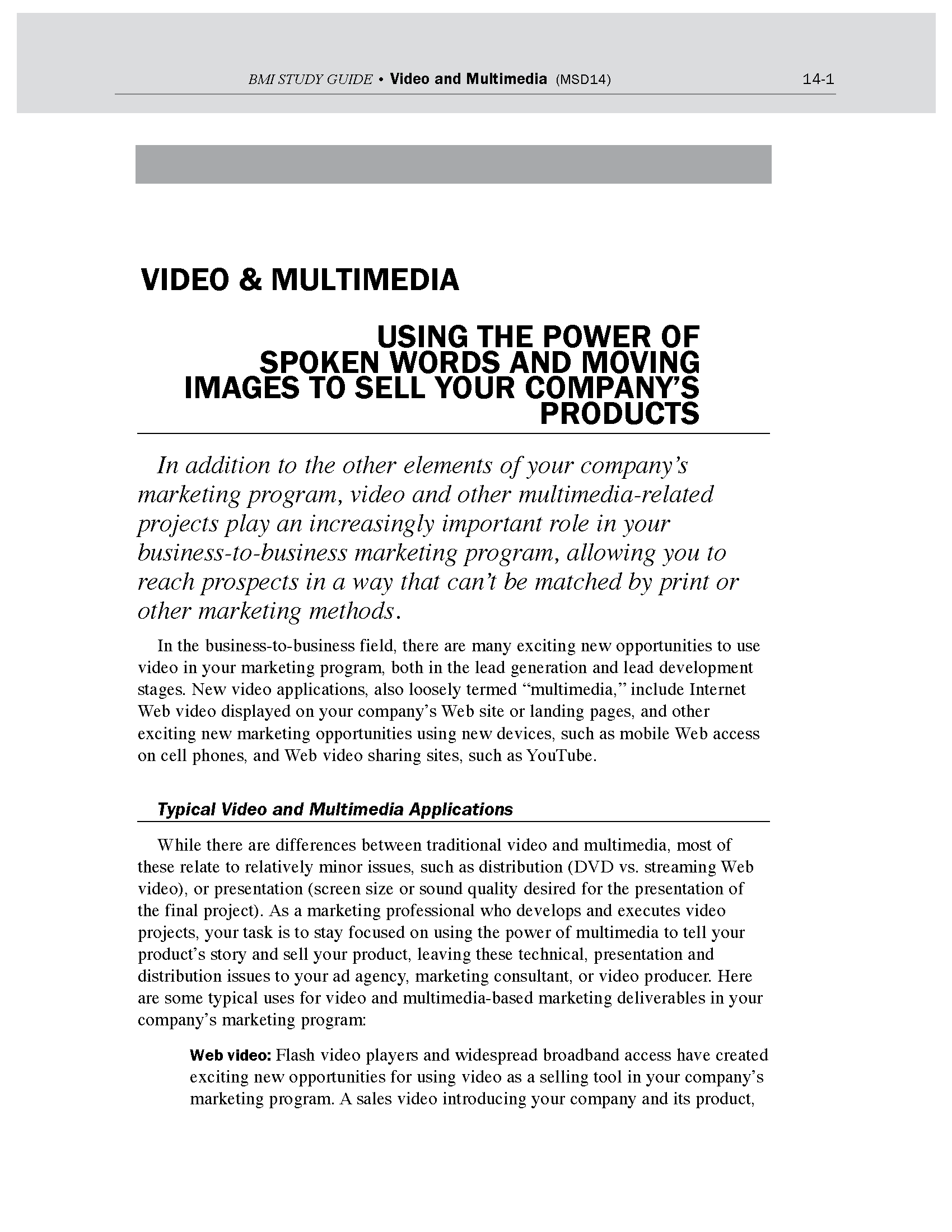 You can also buy this module as part of our special Video, Advertising, and PR Bundle, which includes two other BMI modules covering print advertising planning and execution and PR, providing important project-ready training for your B2B marketing program.